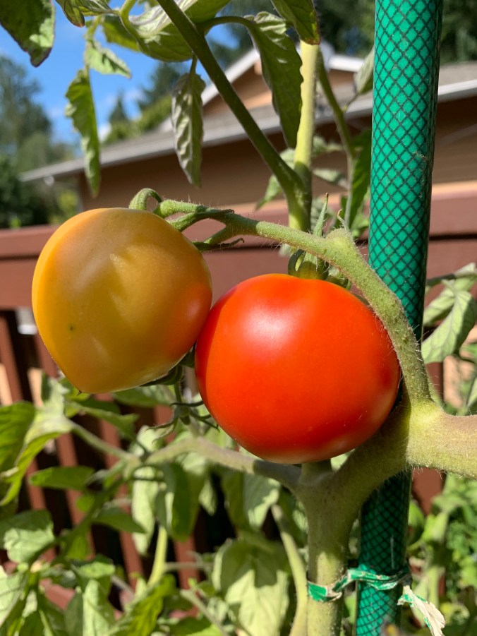 I had decided if they never turned red, I’d make us our weight in fried green tomatoes (a favorite!) and call it good. But finally, finally! The tomatoes have started turning yellow and then red. We’ve been able to eat a few, and there are still a TON of green ones on the vines, but I have faith.